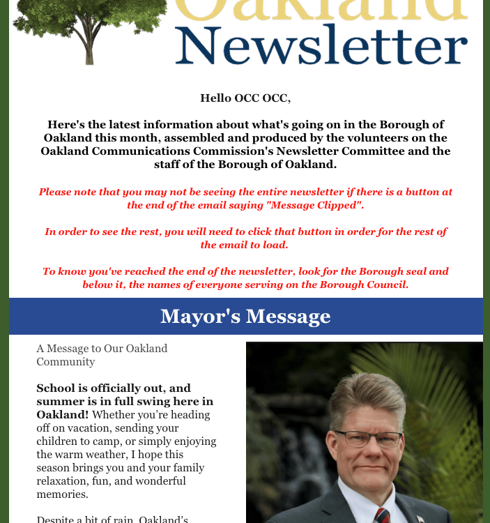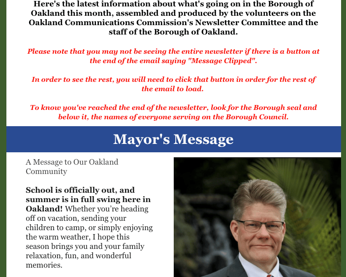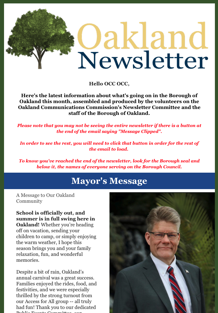 Through fundraisers, grants, and other creative avenues only afforded to non-profit organizations, we aim to help the Borough communicate effectively with all residents, businesses, and visitors to the Borough of Oakland, New Jersey. This includes day-to-day activities, yearly plans and projects, and larger initiatives that require greater funding, collaboration, and flexibility that is harder for a governmental entity to provide.
